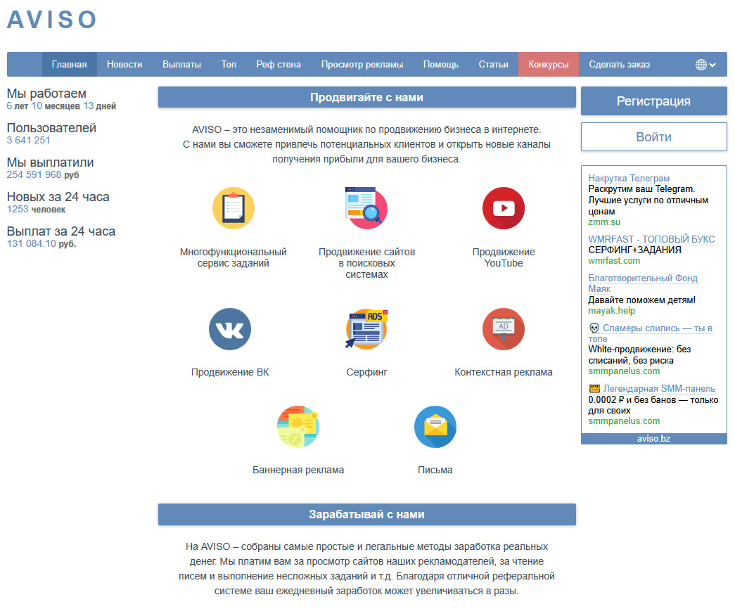 На AVISO – собраны самые простые и легальные методы заработка реальных денег. Мы платим вам за просмотр сайтов наших рекламодателей, за чтение писем и выполнение несложных заданий и т.д. Благодаря отличной реферальной системе ваш ежедневный заработок может увеличиваться в разы.