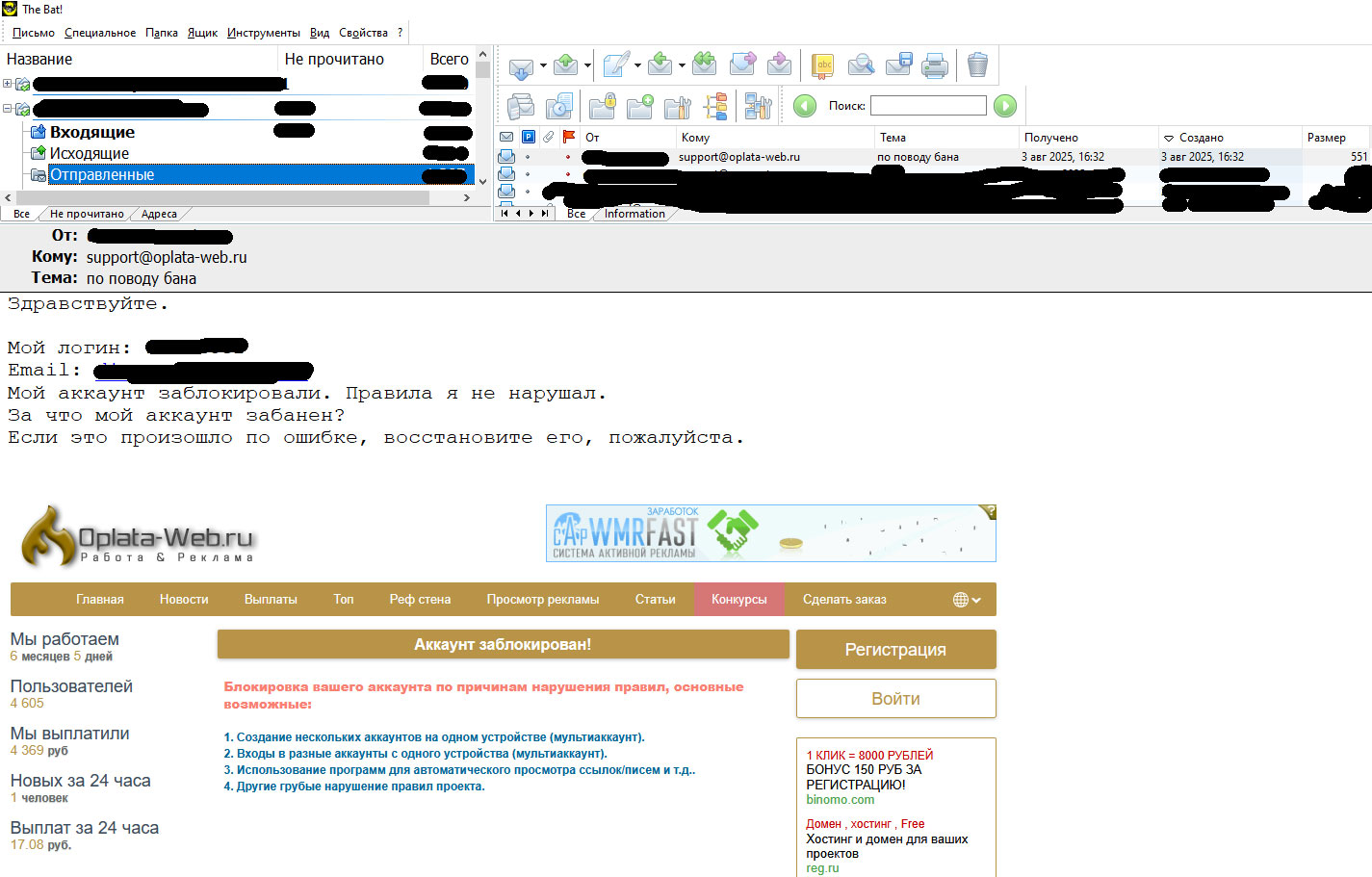 03.08.2025 в службу поддержки было написано письмо с просьбой разъяснить ситуацию и указать конкретную причину блокировки. Прошло трое суток, сегодня уже шестое число, ответа от поддержки так и не последовало.