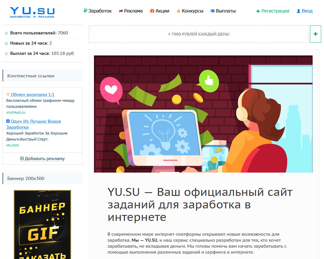 Основное преимущество YU.SU заключается в том, что для заработка здесь не требуется первоначальных вложений. Вы можете начать зарабатывать сразу после регистрации, выполняя задания, размещаемые потенциальными заказчиками.